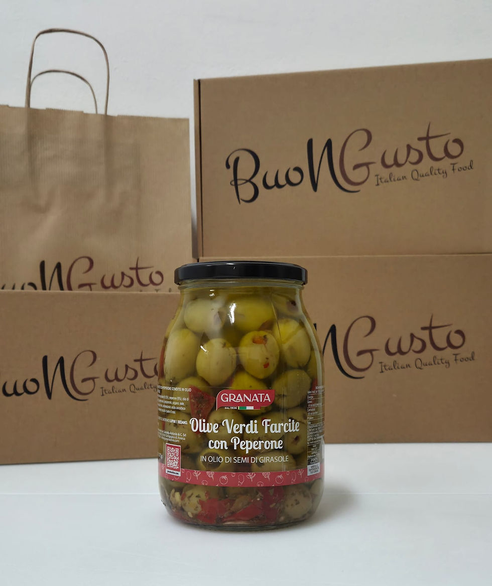 MASLINE ZELENE BEZ KOŠTICE U SUNCOKRETOVOM ULJU PUNJENE PAPRIKOM GRANATA 1020G